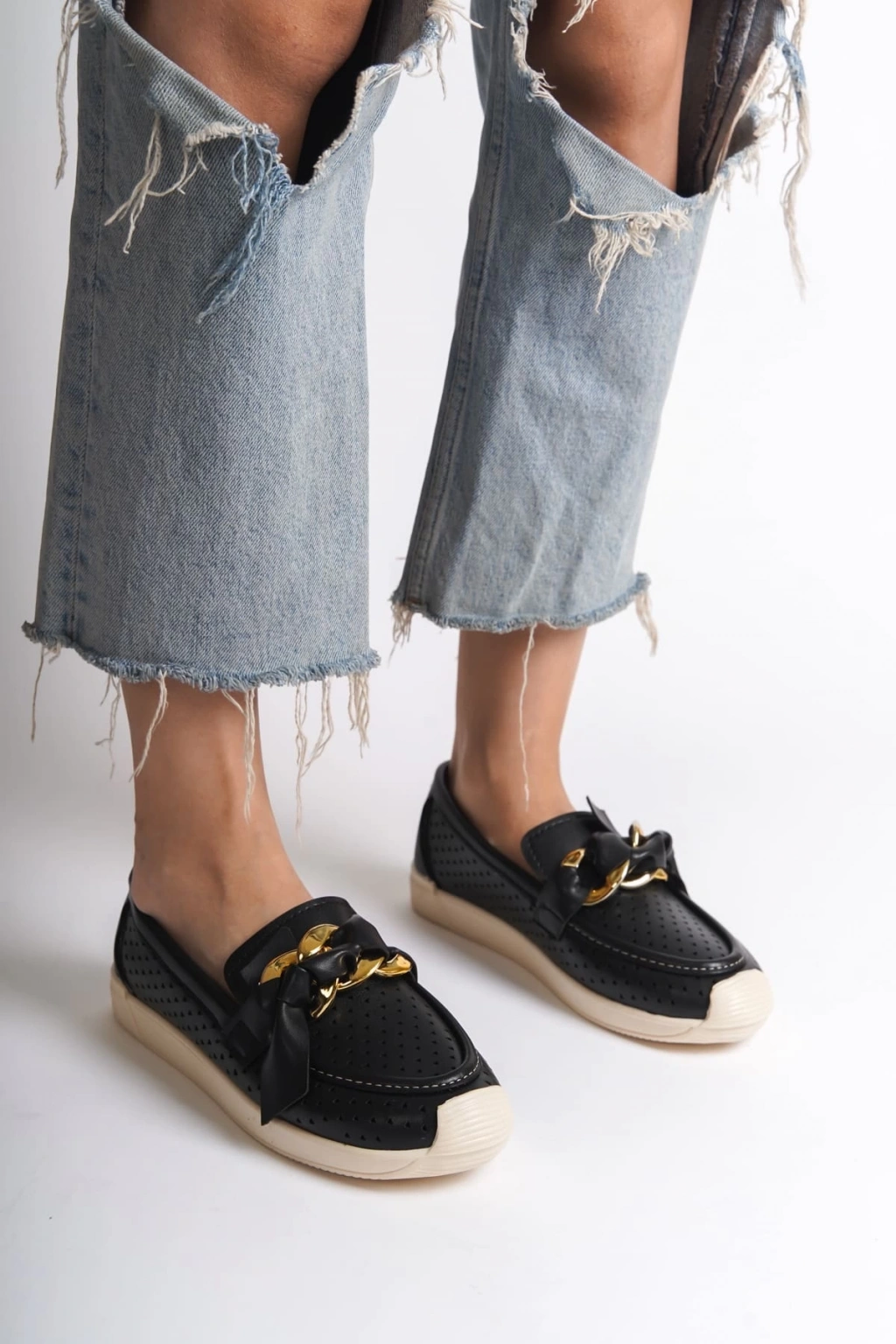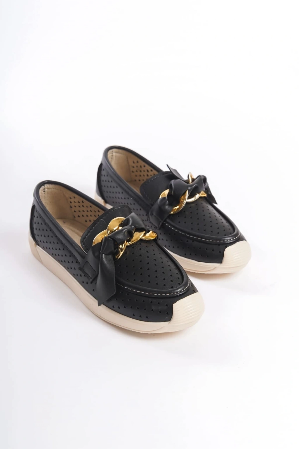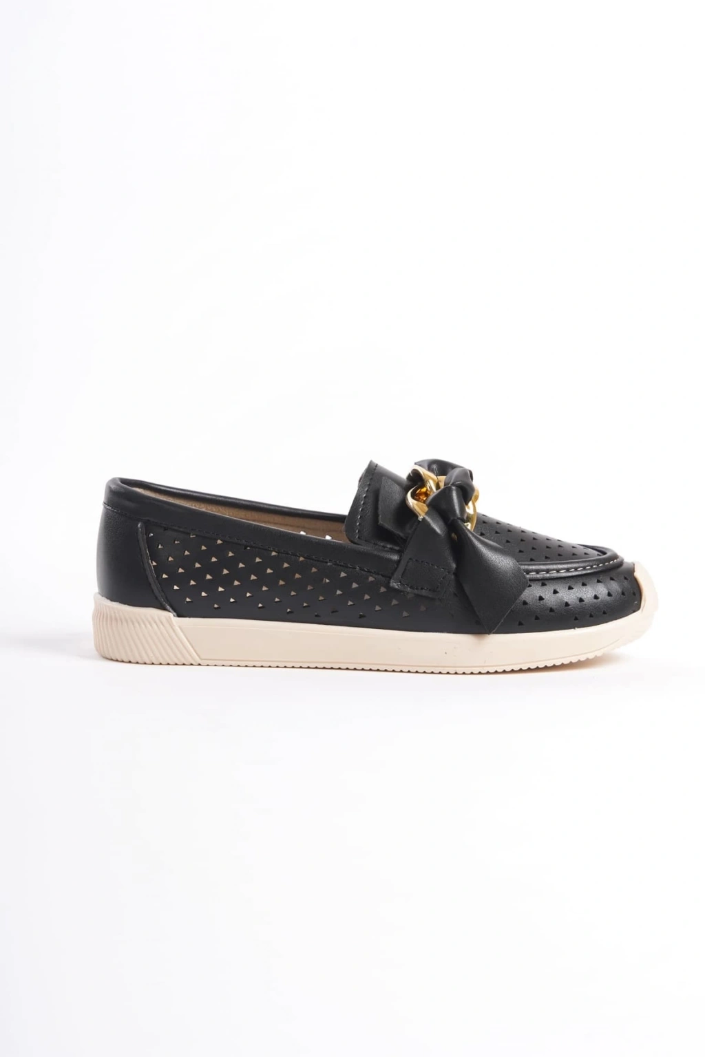 LYDIA Bağcıksız Ortopedik Rahat Taban Kalp Desenli Kadın Babet Ayakkabı CKT - Siyah