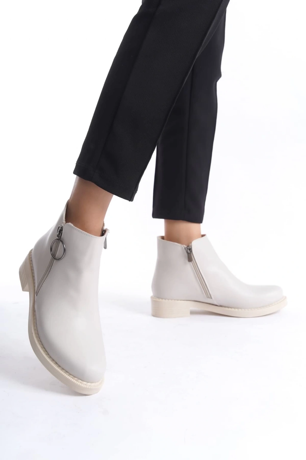 MARGARET Fermuarlı Ortopedik Taban Topuklu Kadın Bot CKT - Krem