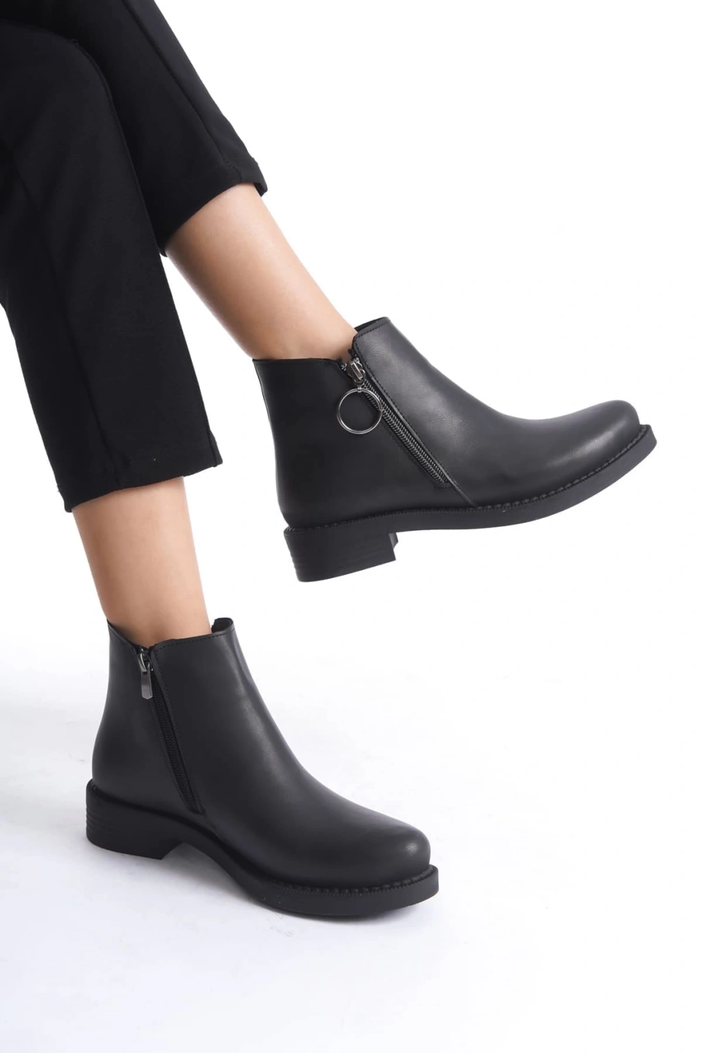 MARGARET Fermuarlı Ortopedik Taban Topuklu Kadın Bot - CST - Siyah