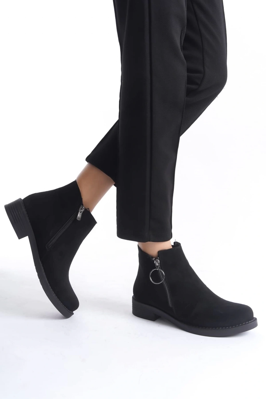 MARGARET Fermuarlı Ortopedik Taban Topuklu Süet Kadın Bot SST - Siyah