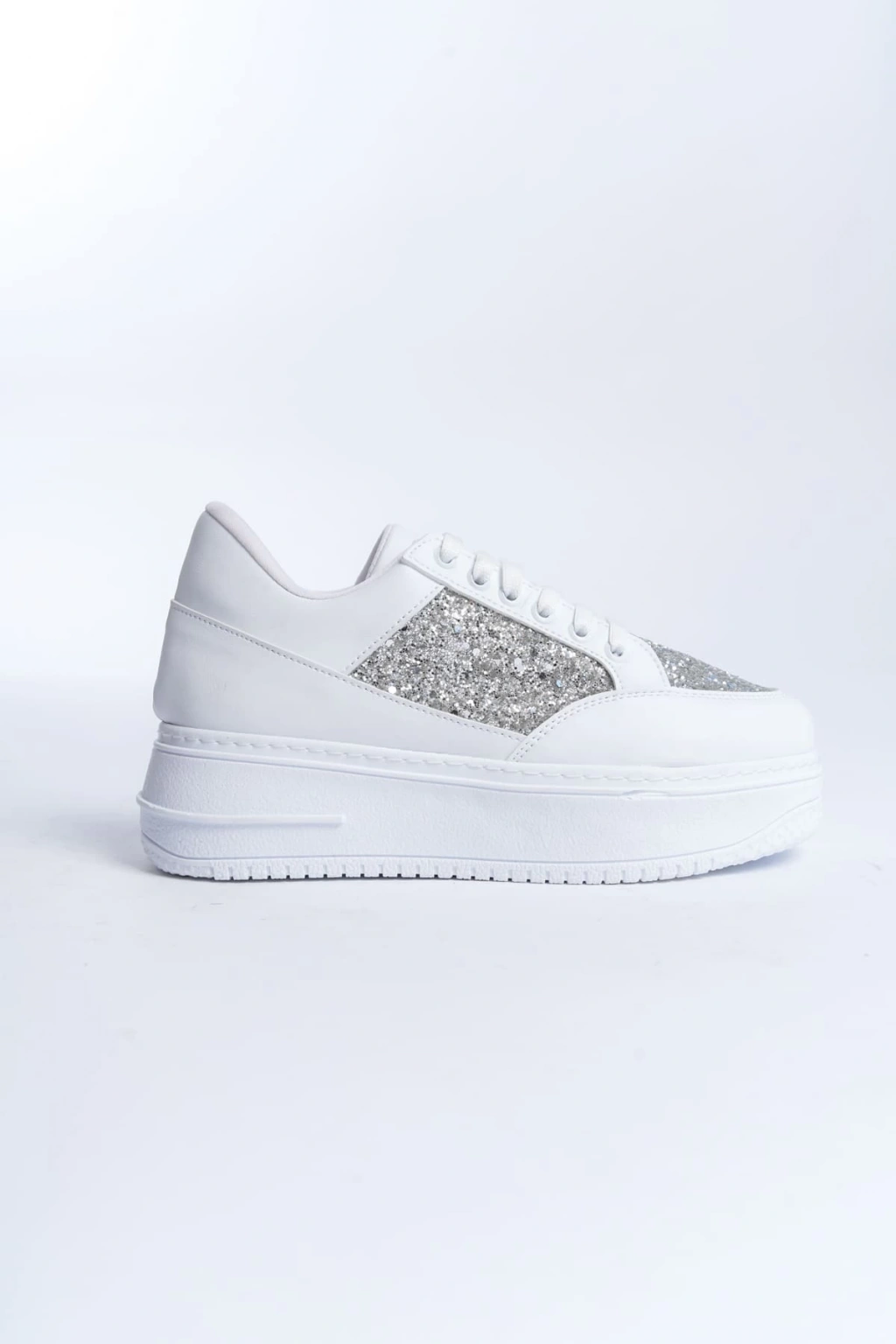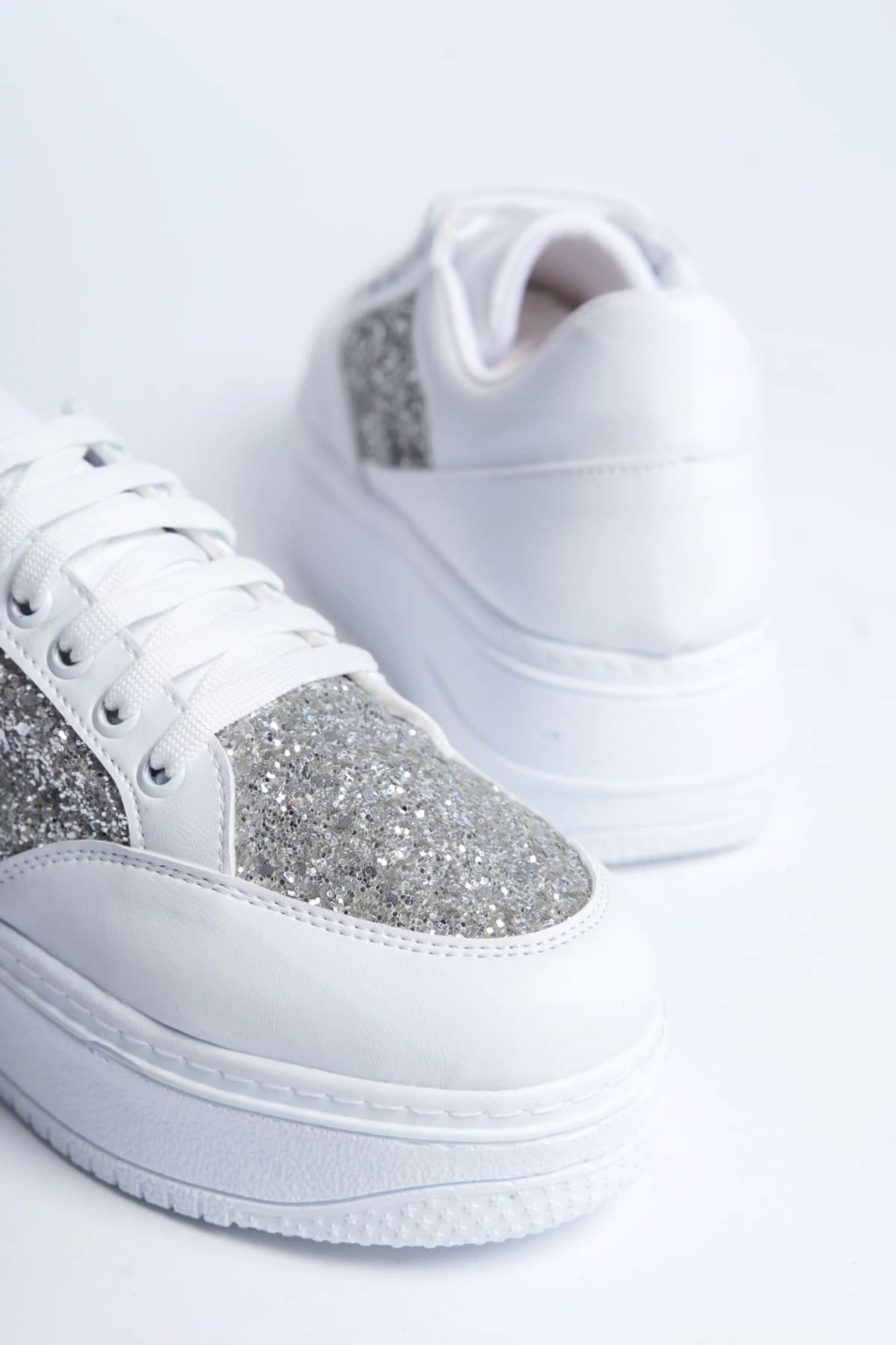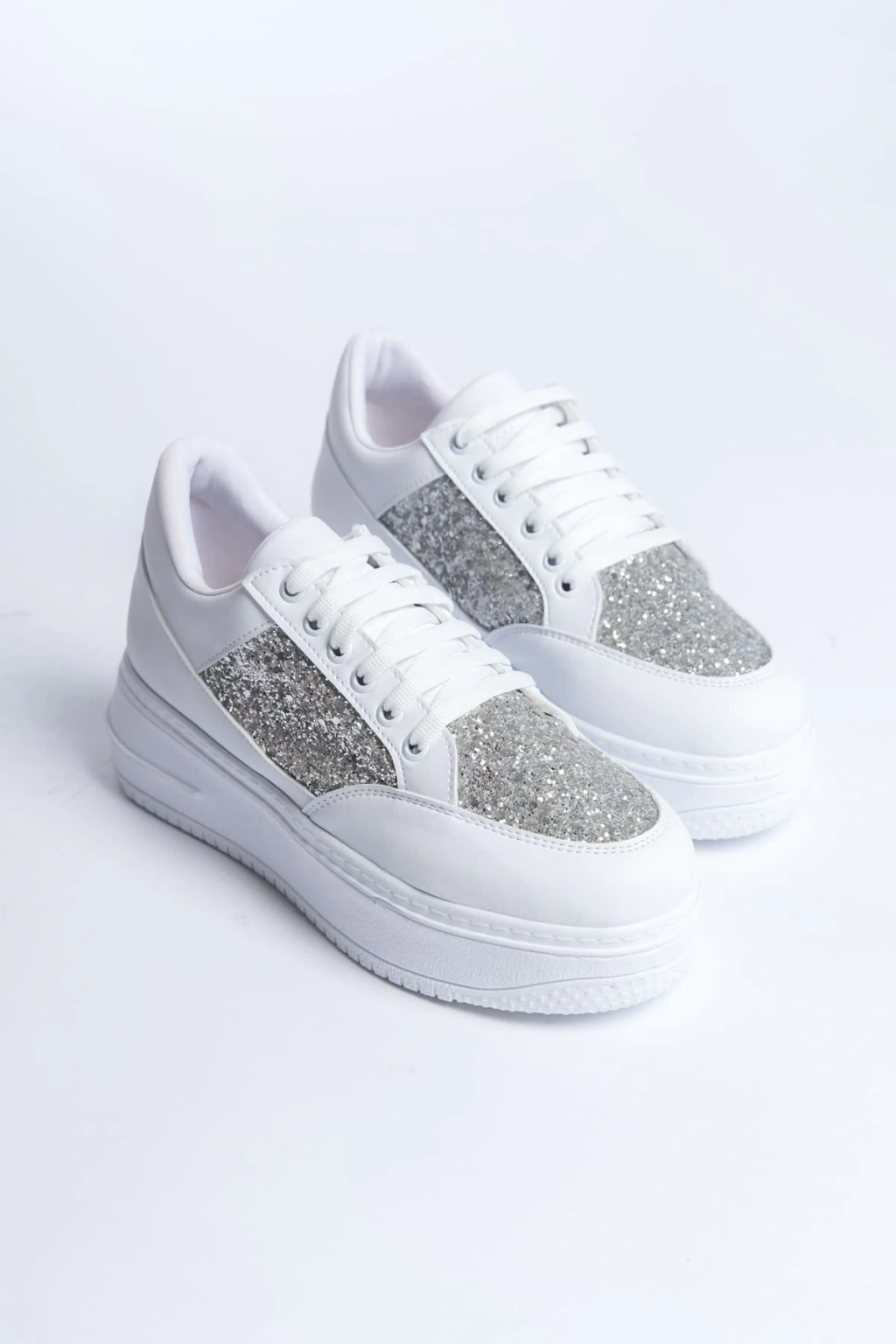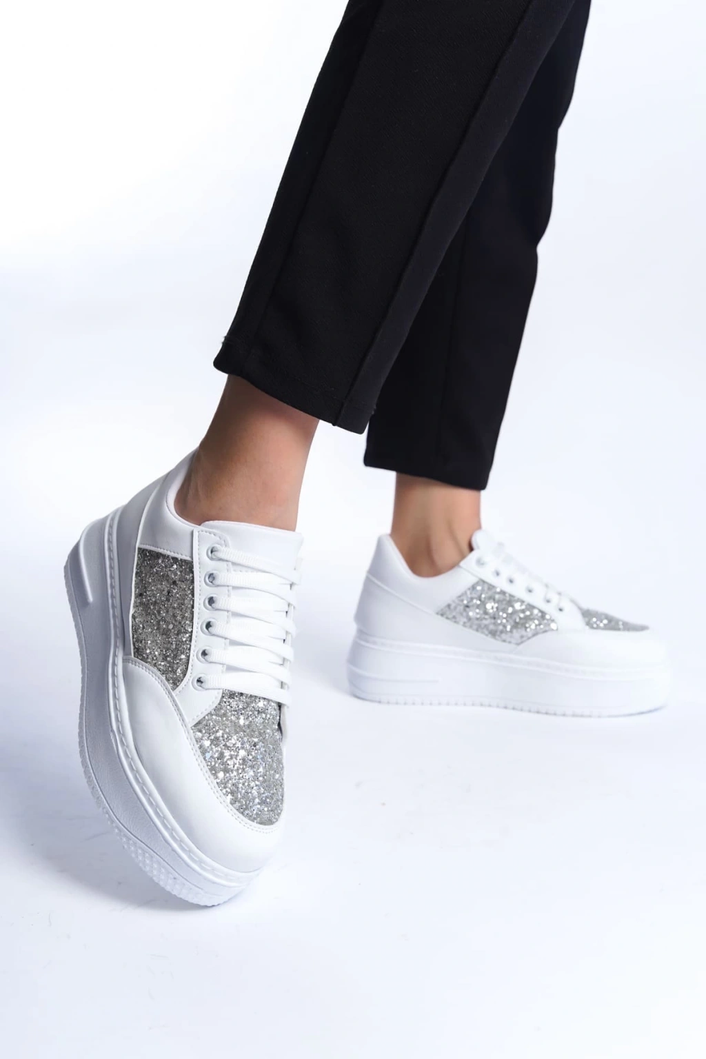 MIPA Bağcıklı Ortopedik Taban Simli Kadın Sneaker Spor Ayakkabı CBT - Beyaz