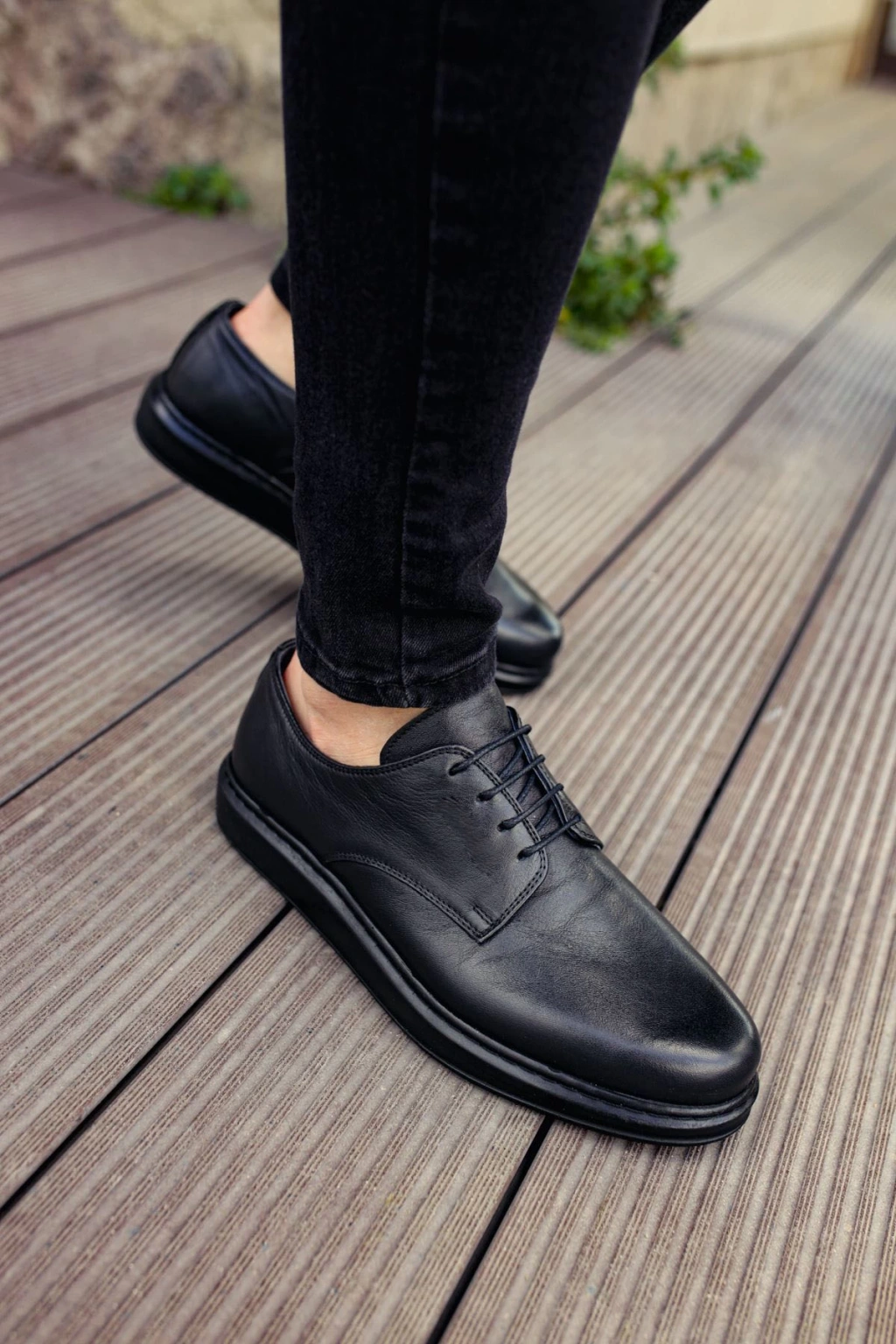 MN003 - DST Classica Pelle Di Cuoio Erkek Ayakkabı SIYAH