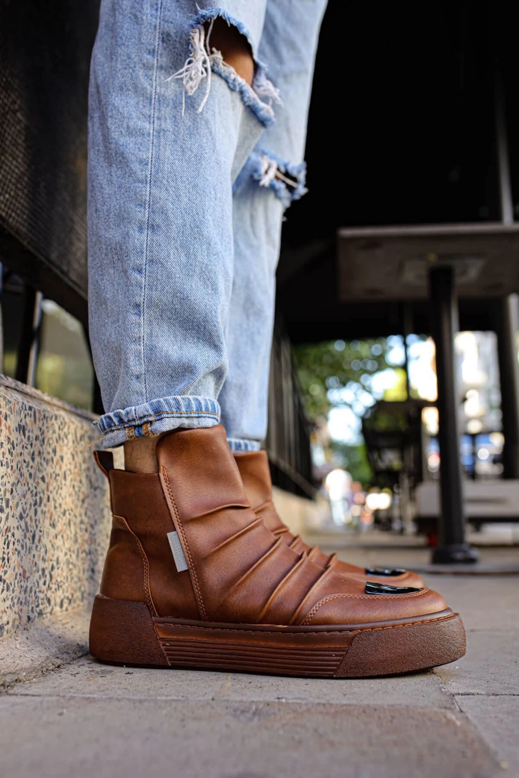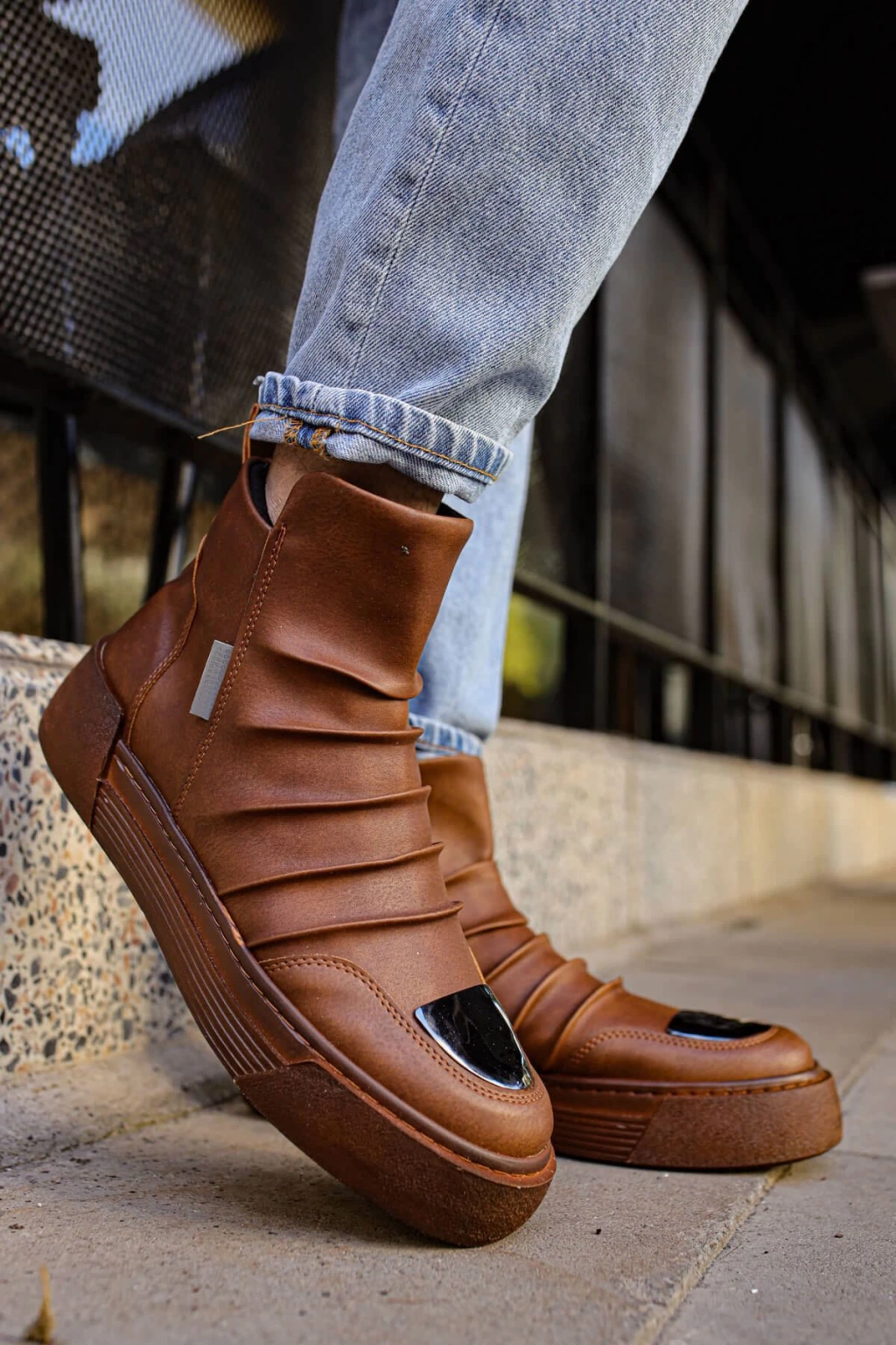 JY206 Ottawa Bağcıklı Ortopedik Taban Cilt Erkek Spor Bot CBT - Taba