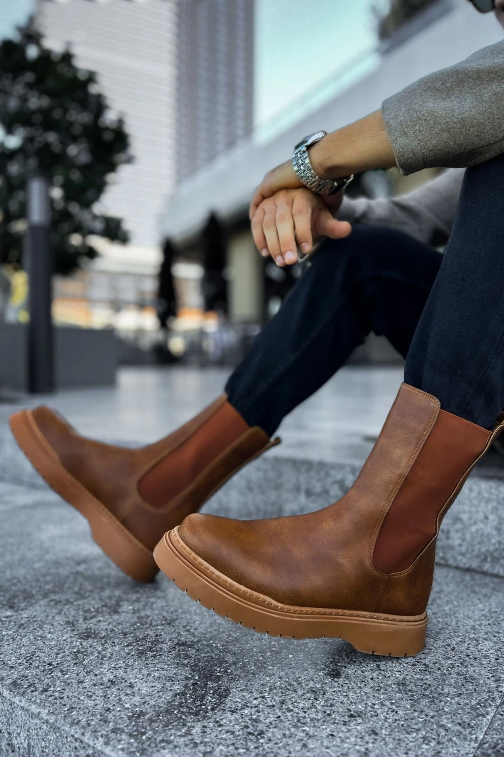JY206 Ottawa Bağcıklı Ortopedik Taban Cilt Erkek Spor Bot CBT - Taba