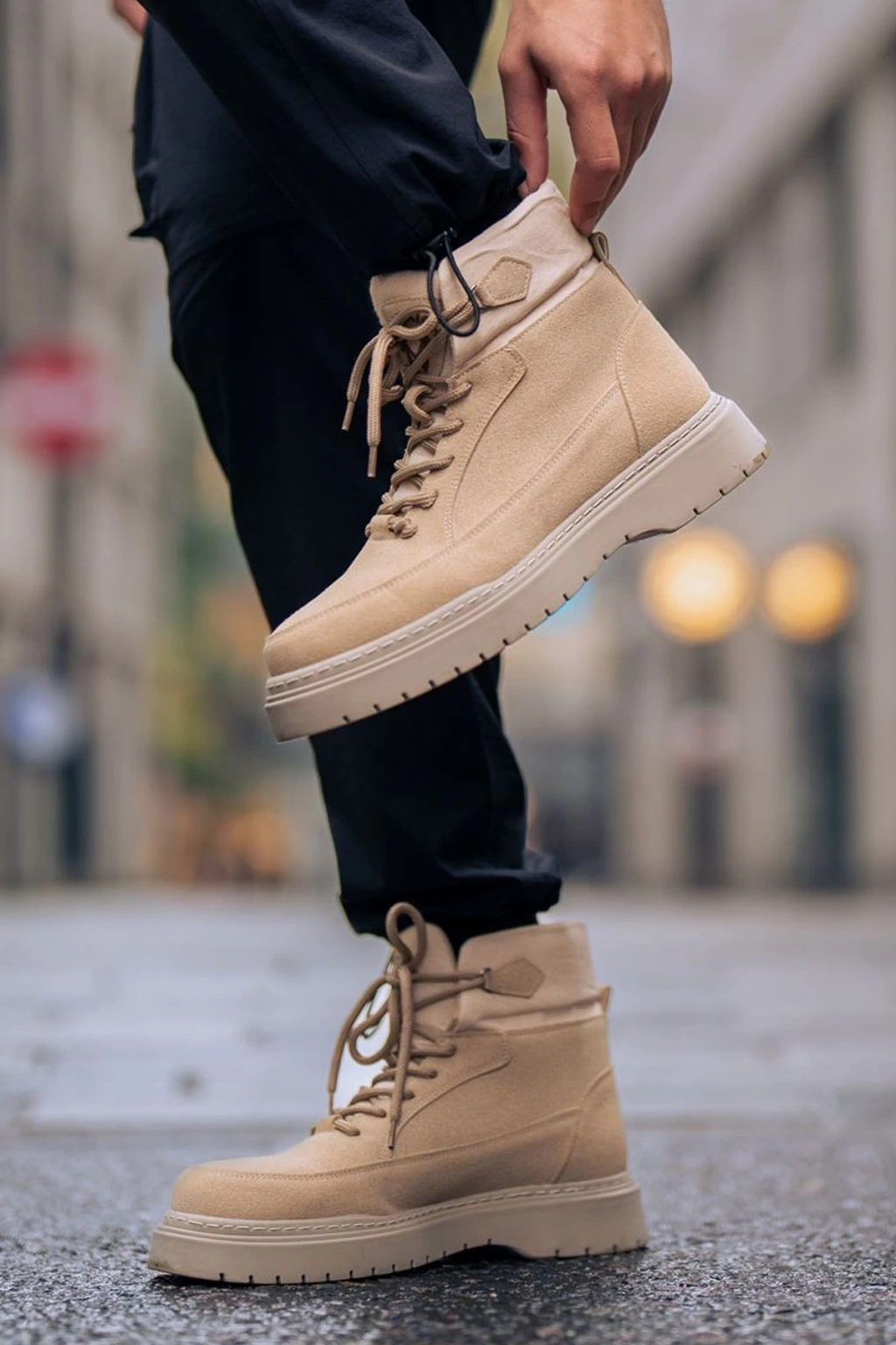 JY206 Ottawa Bağcıklı Ortopedik Taban Süet Erkek Spor Bot SBT - Krem