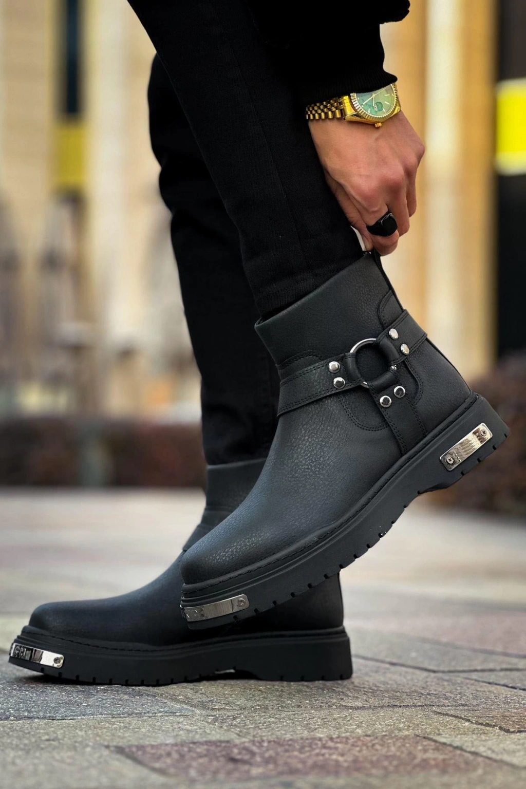 JY205 Boston Bağcıksız Ortopedik Taban Cilt Erkek Spor Bot CBT - Siyah