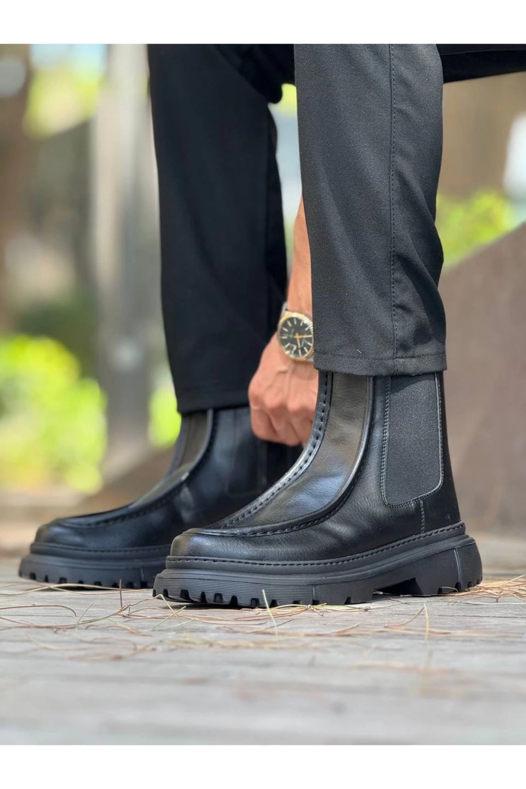 JY205 Boston Bağcıksız Ortopedik Taban Cilt Erkek Spor Bot CST - Siyah