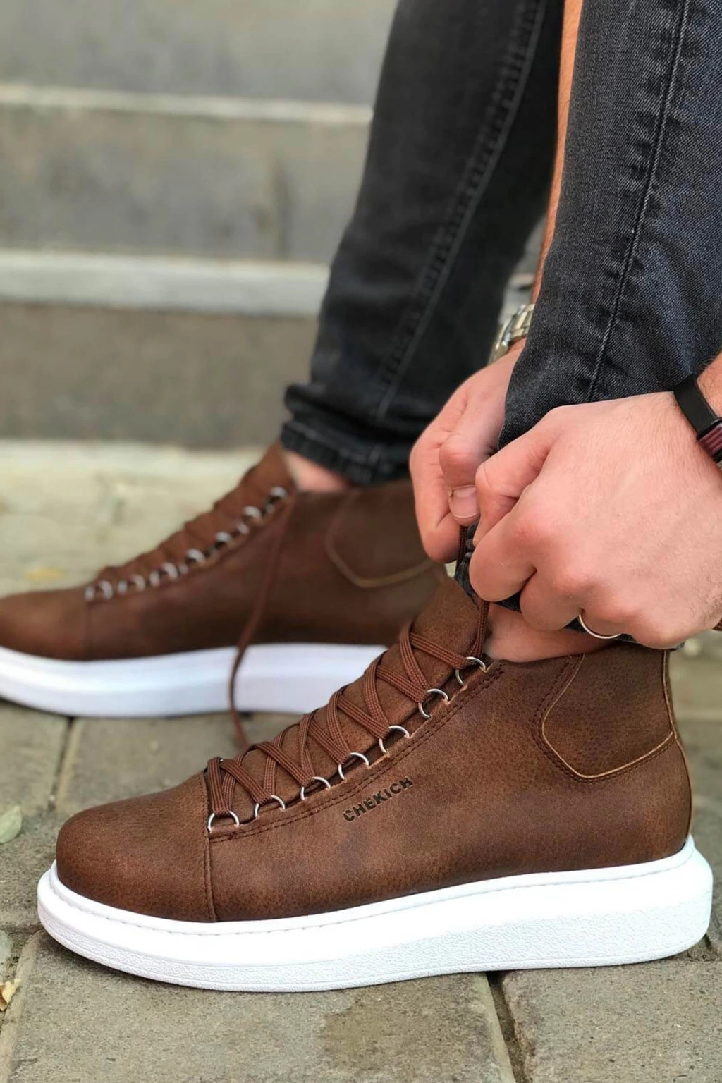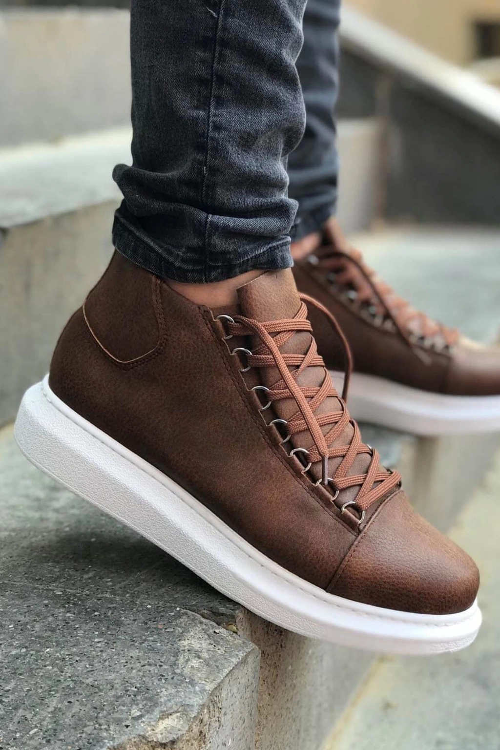 JY206 Ottawa Bağcıklı Ortopedik Taban Cilt Erkek Spor Bot CBT - Taba