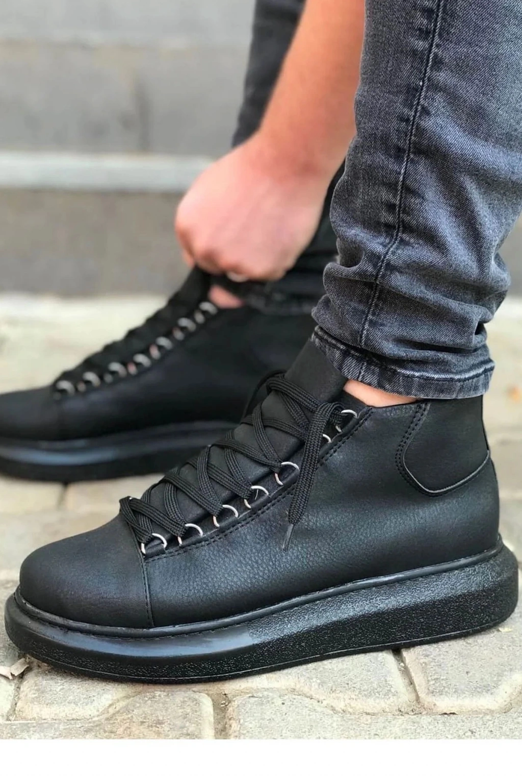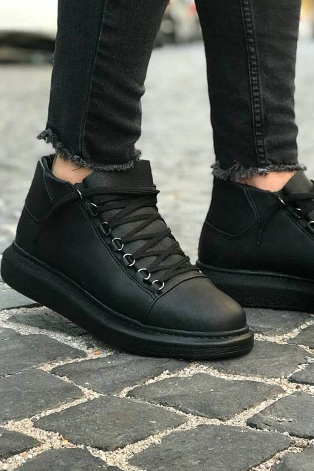 JY206 Ottawa Bağcıklı Ortopedik Taban Cilt Erkek Spor Bot CBT - Siyah