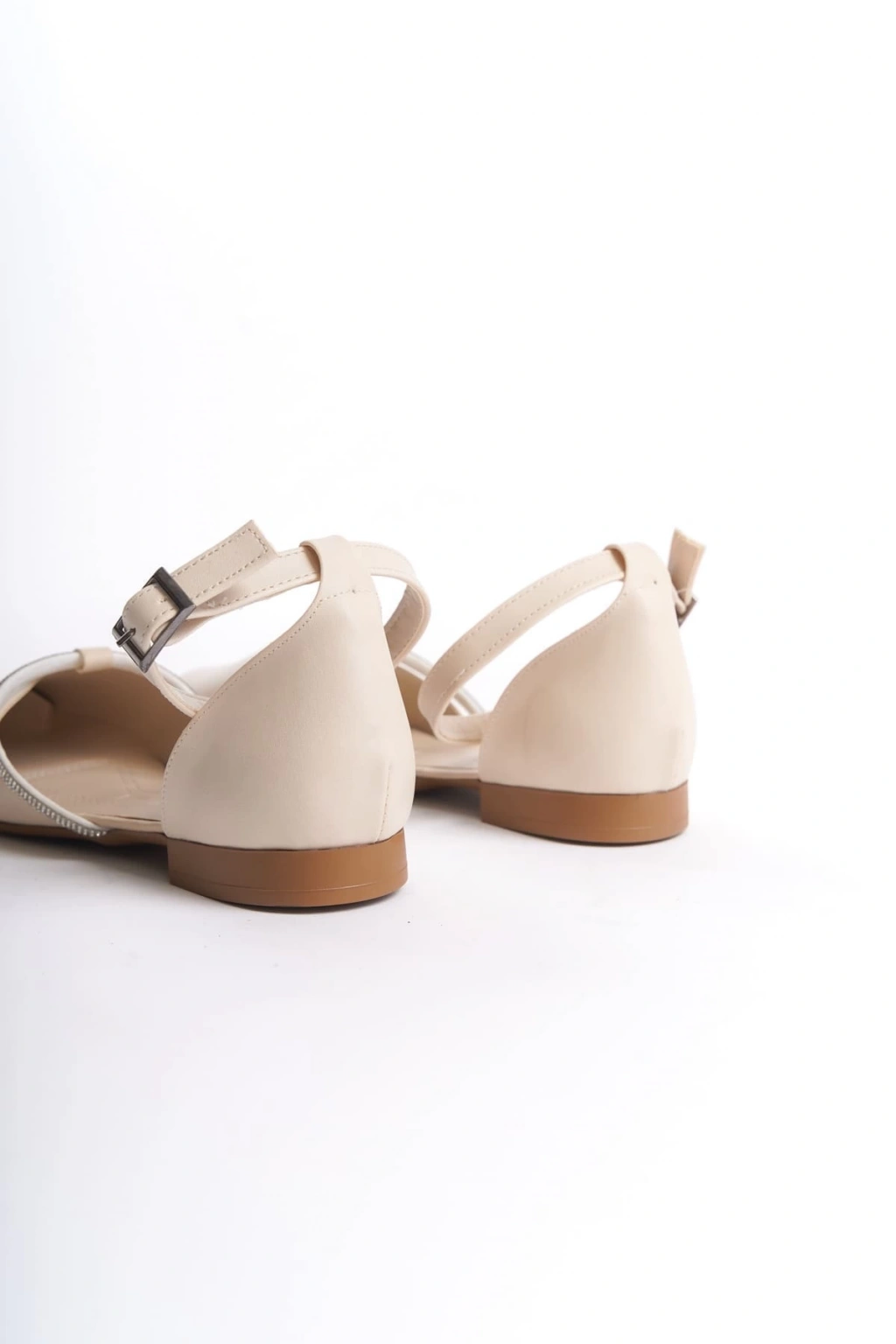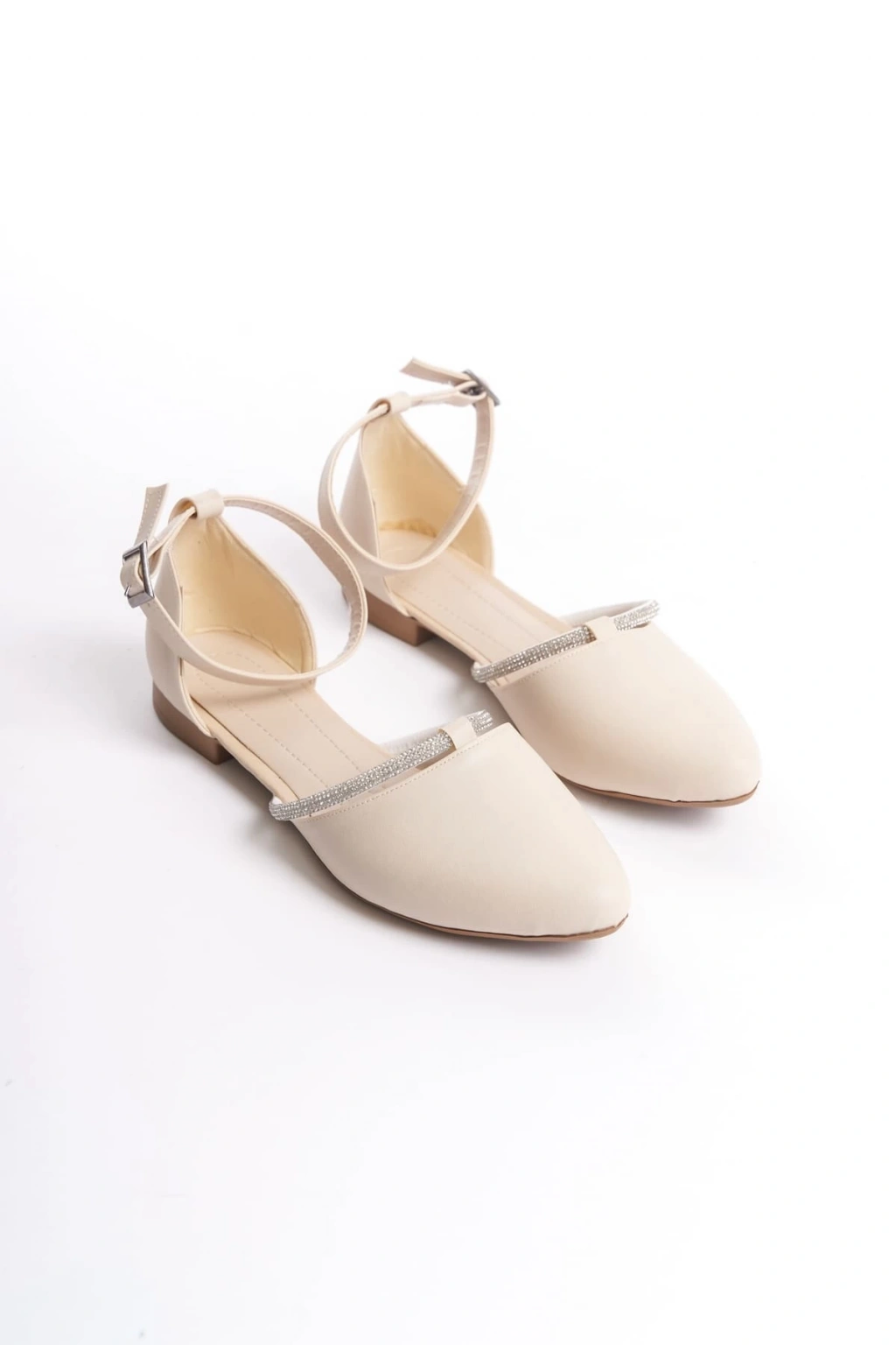 MONICA Tokalı Ortopedik Rahat Taban Taş Detaylı Kadın Babet Ayakkabı CKT - Krem