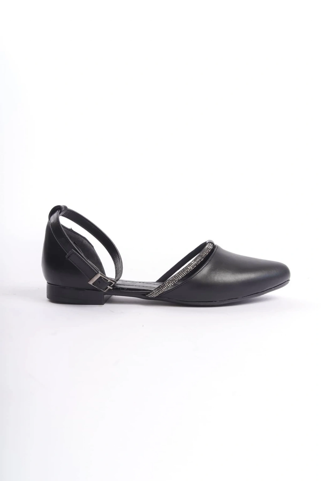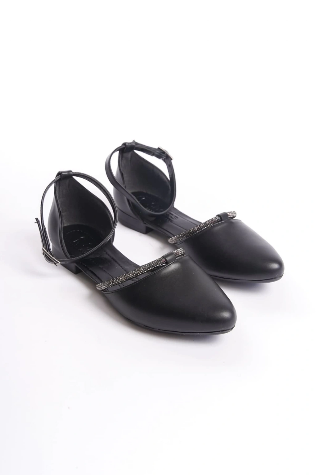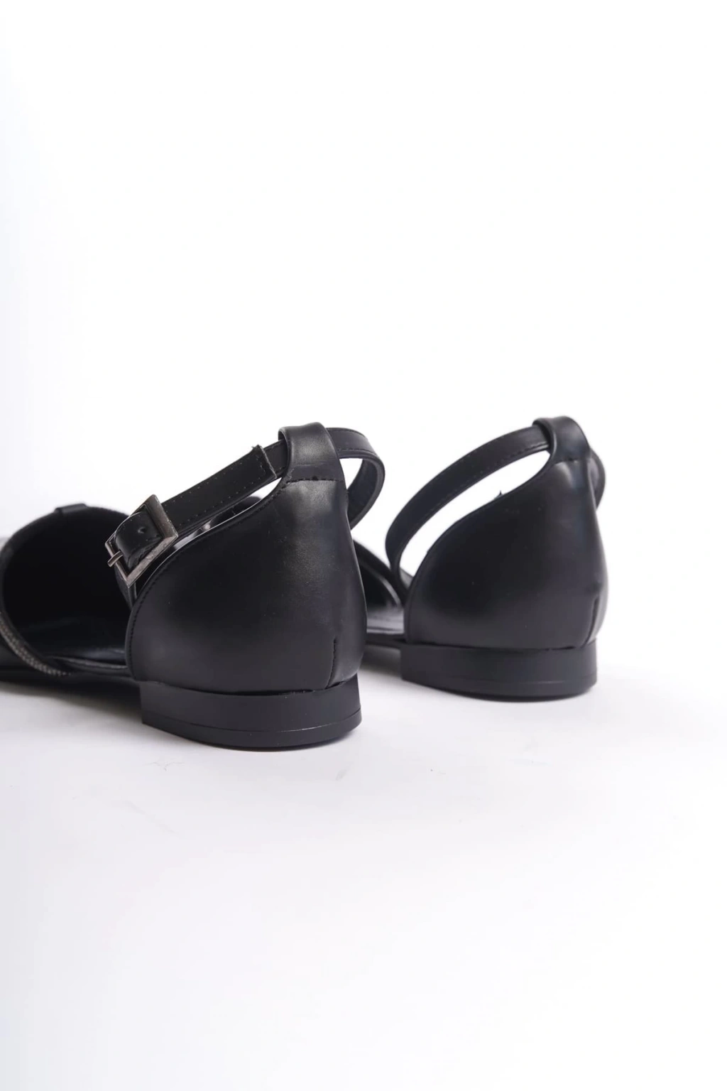 MONICA Tokalı Ortopedik Rahat Taban Taş Detaylı Kadın Babet Ayakkabı CST - Siyah