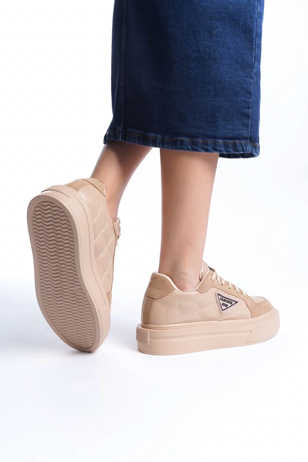 PRAG Bağcıklı Ortopedik Taban Desenli Kadın Sneaker Spor Ayakkabı CTT - Ten