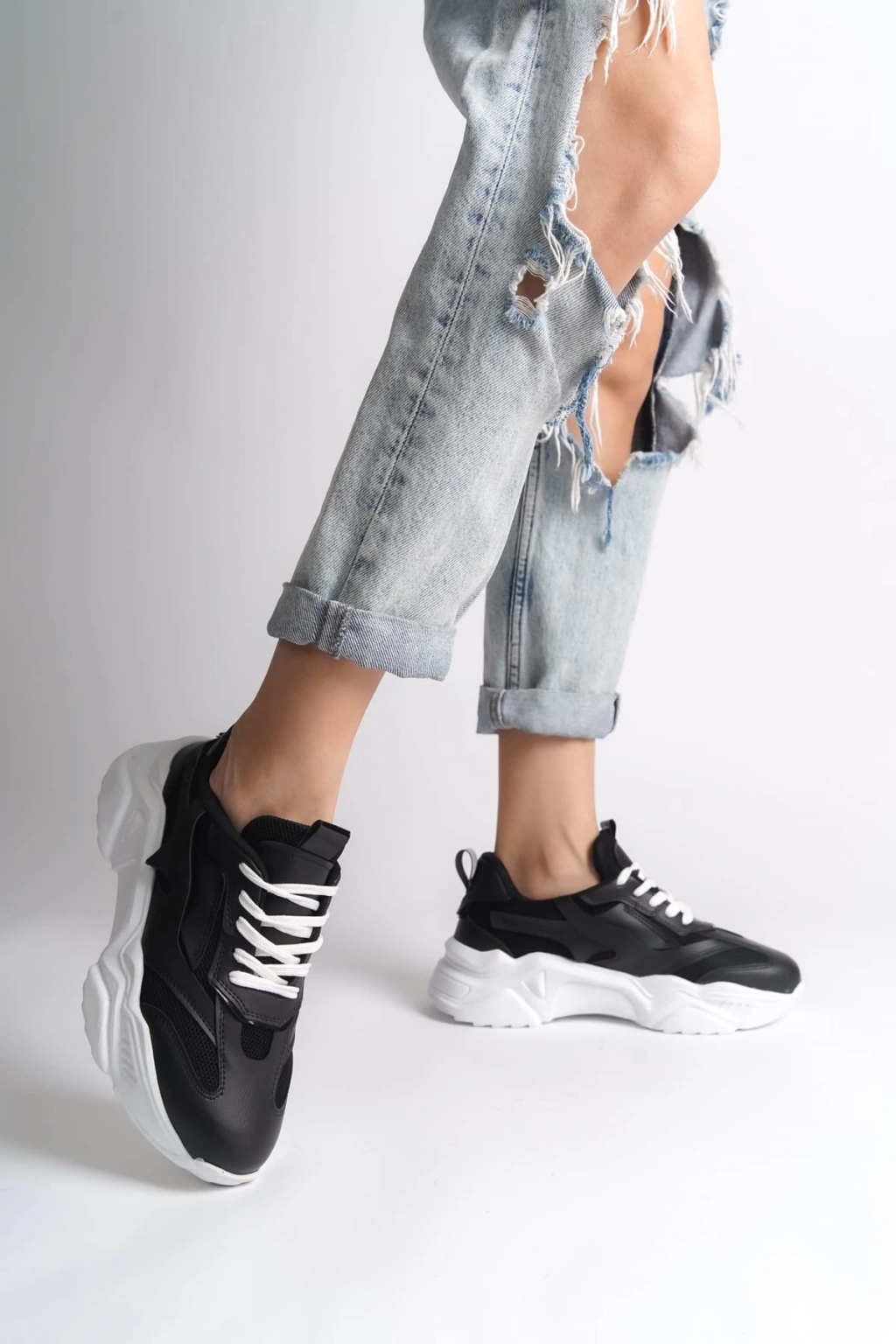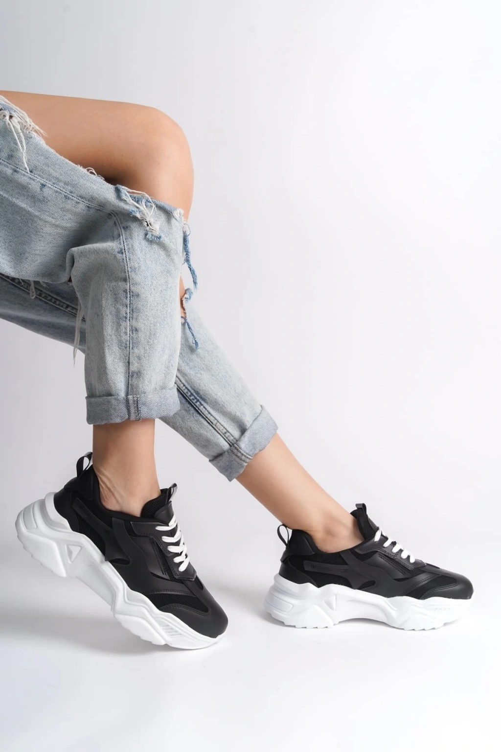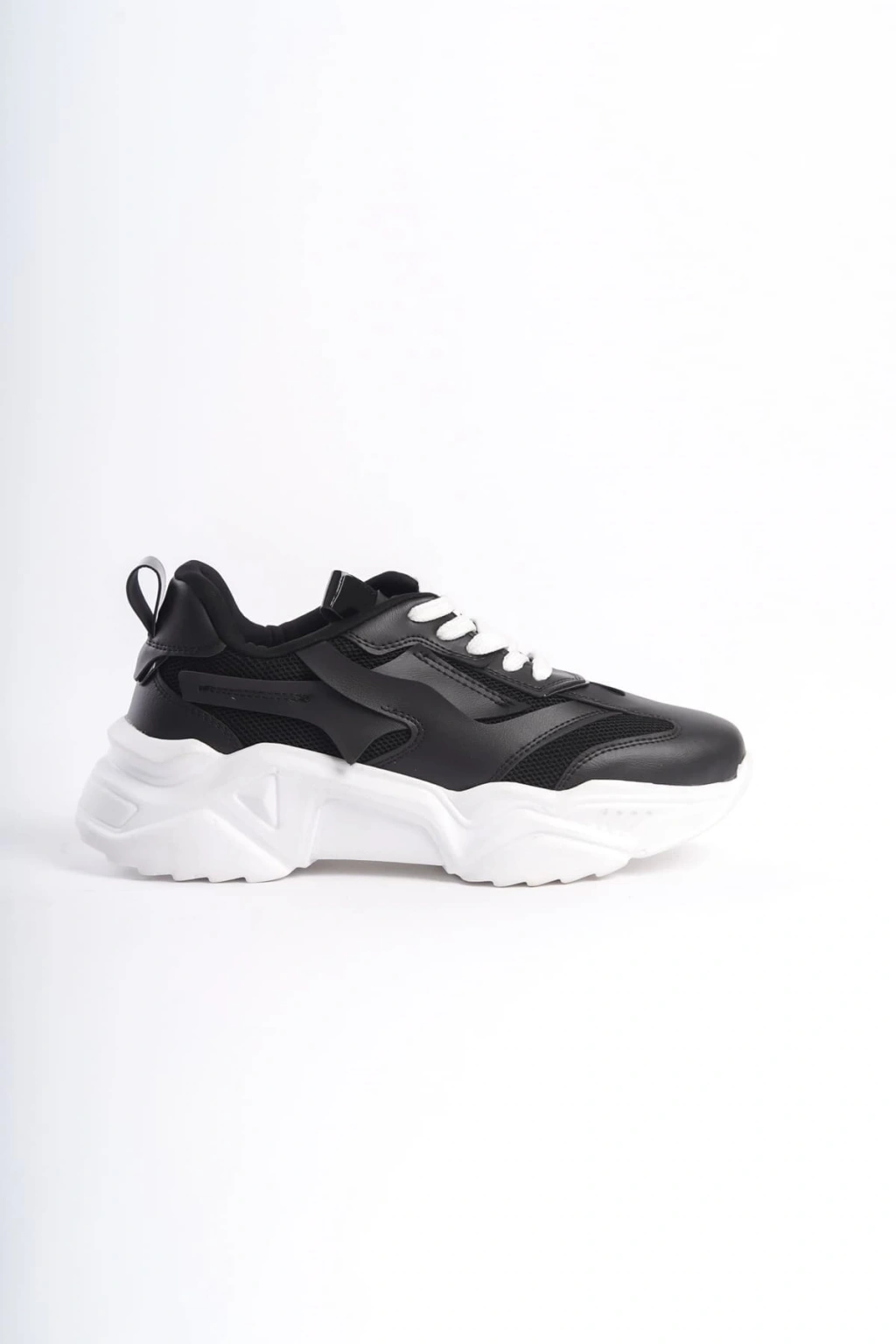 TOKYO Bağcıklı Ortopedik Taban Triko Detaylı Kadın Spor Ayakkabı TBT - Siyah